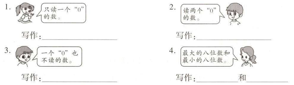 五、用4个“0”和4个“5”按要求写数。(8分)