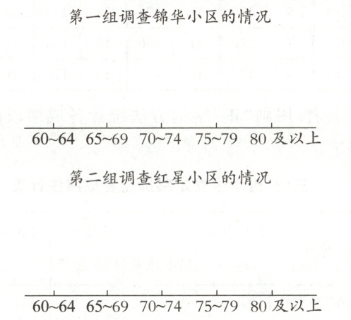 ## 六、下面是三(1)班第一组调查锦华小区和第二组调查红星小区60岁及以上部分老人的年龄情况。(单位:岁)(共21分)