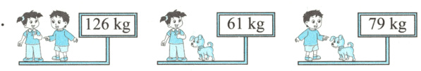 7 [解析:由题图可知,女生的质量+狗的质量+男生的质量+狗的质量 = 61 + 79 = 140(千克)。因为男生的质量+女生的质量 = 126千克,所以狗的质量+狗的质量 = 140 - 126 = 14(千克),则狗重14÷2 = 7(千克)。]