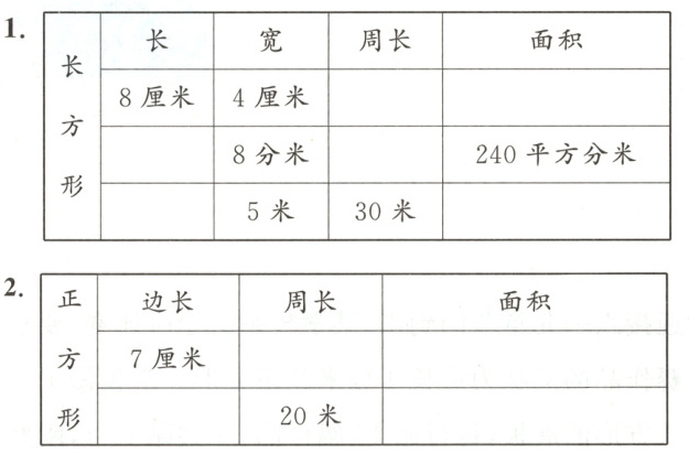 2. 28厘米 49平方厘米 5米 25平方米(从左到右,从上到下)