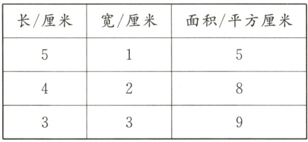 新趋势 开放探究 下面的方格图中,每个小方格都表示边长1厘米的正方形,在方格图中画三个形状不同,但周长都是12厘米的长方形或正方形。完成表格,并写出你的发现。