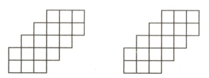 [解析:通过观察,可以发现题图中每个图形都有18个小正方形。如果要把它剪成6个面积相同的图形,分成的图形中含有小正方形的个数是18÷6 = 3。再通过尝试进行裁剪。]