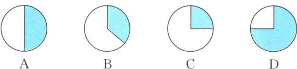1. 下面各图中,涂色部分表示的分数与右面方格图中涂色部分表示的分数相同的是( )。