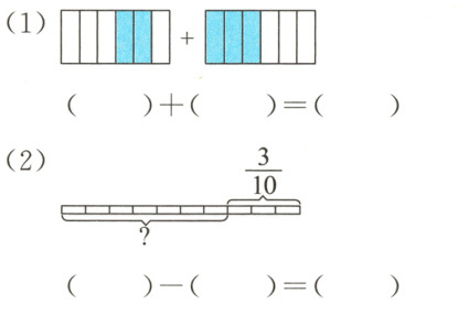 $\frac{5}{10}+\frac{2}{10}=$ $\frac{3}{5}+\frac{2}{5}=$ $\frac{3}{4}-\frac{2}{4}=$ $\frac{1}{3}+\frac{1}{3}=$