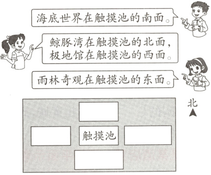 4. 根据小朋友们的描述写出海洋公园各场馆的位置。