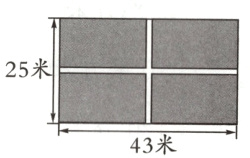 25 - 1 = 24(米) 43 - 1 = 42(米)24×42 = 1008(平方米)1008÷4 = 252(平方米)