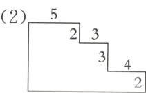(2)5×2+(5 + 3)×3+(5 + 3 + 4)×2 = 58(平方厘米)
