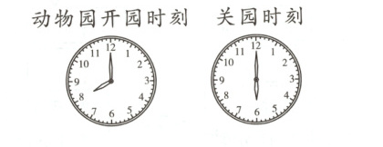 (3)小红和她的三个朋友下午4时进动物园。她们在动物园最多能玩( )小时。