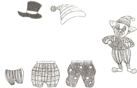 2. 马戏团里的小丑要表演,想选一顶帽子和一条裤子,有几种不同的搭配方法?连一连。