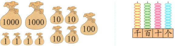 分别代表1000、100、10、1,写出各数。