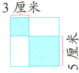 5 3 [解析:因为正方形的四条边都相等,因此空白长方形的长等于涂色大正方形的边长,是5厘米,空白长方形的宽等于涂色小正方形的边长,是3厘米。