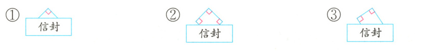 2. 下面三个信封中分别装有一张四边形硬纸板,并且硬纸板都露出了一部分,从( )号信封抽出的硬纸板的形状一定是正方形。