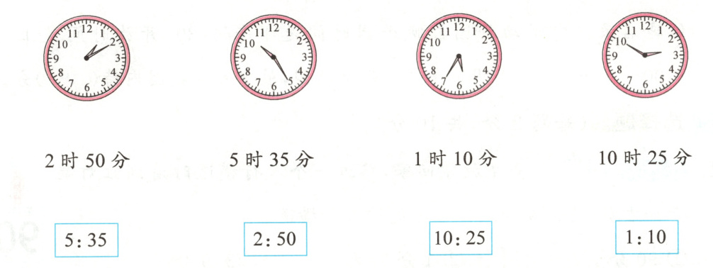 3. 在钟面上画出时针和分针,并填出对应的时刻。(10分)
