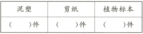 2. 剪纸比植物标本多( )件。(2分)