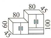 6. 一种组合高低柜是由一个长80 cm、宽45 cm、高60 cm的长方体和一个长80 cm、宽45 cm、高100 cm的长方体组合成的(如图)。工人要给这个高低柜刷油漆,底面不刷,需要刷油漆的面积是多少平方厘米?(把手处忽略不计)(单位:cm)(7分)