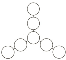 1. 新素养 推理意识 将$\frac{1}{2}$,$\frac{1}{3}$,$\frac{1}{4}$,$\frac{1}{5}$,$\frac{1}{6}$,$\frac{5}{12}$,$\frac{7}{15}$分别填入下图的$\bigcirc$里,使每条线上三个数的和都等于1。(4分)
