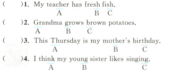 四、(2024·山东临沂)读句子,选出画线部分发音不同的一项。(5分)