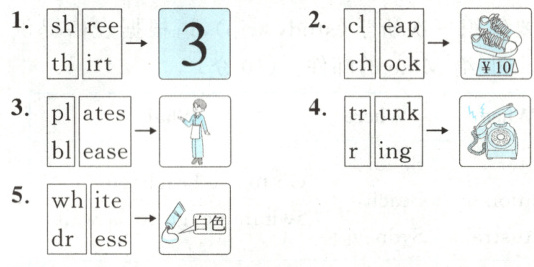 一(2024·重庆荣昌区改编)根据图片提示,圈出正确的字母组合成单词。(5分)
