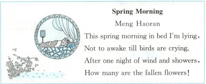 ( )3. The writer of the poem wakes up(醒来)because of the wind and showers.