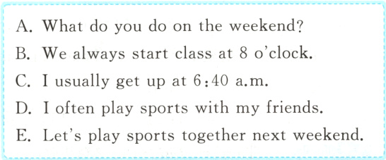 ( )3. Billy never(从不) plays sports at 4:30 p.m.