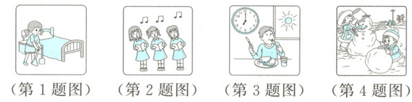 ### 二、点点随机挑选了一些图片和句子,请同学们根据图片提示填空。(10分)