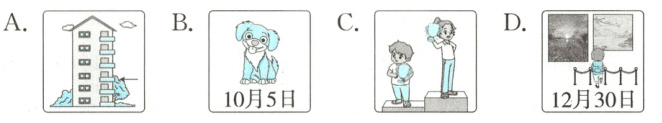 #### 二、根据句中信息提示,先选择相应的图片,再借助图片补全句子或对话。(8分)