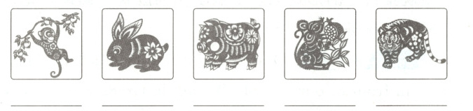 ### 一、(亮点原创) Pedro在民俗文化艺术展上看到了一些剪纸作品。根据动物在十二生肖中的顺序,在横线上写出对应的序数词。(不写缩写形式)(5分)