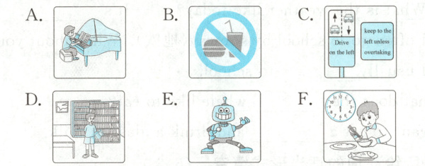 ( )5. It’s 6 o’clock in the afternoon. Tom is eating dinner.