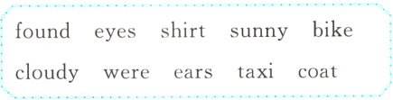 1. shirt, coat 2. sunny, cloudy 3. bike, taxi 4. found, were 5. eyes, ears