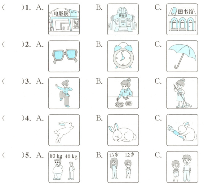 一$(2024·$云南昭通改编$)$听录音,选出与所听内容相符的图片。$(5$分$)$