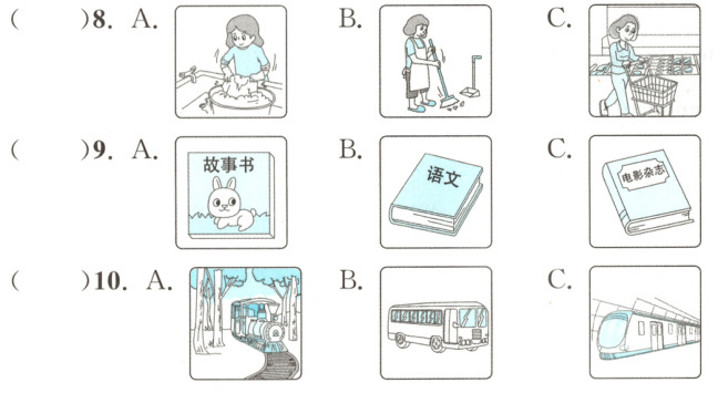 ### 一、听录音,选出你所听到的内容或与所听内容相符的图片。(10分)