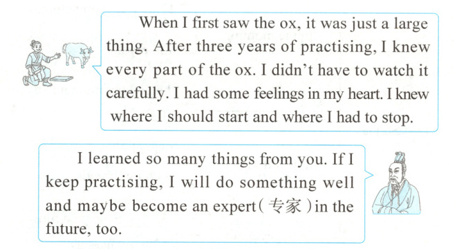 ( )4. $Ding$ $could$ $cut$ $the$ $ox$ $in$ $a$ $short$ $time$ $because$ $he$ $watched$ $the$ $ox$ $carefully.$