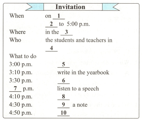 十、听录音,根据所听内容,完成邀请函。(10分)