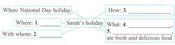 1. Xinjiang 2. (her) parents 3. by train 4. rode horses 5. went camping