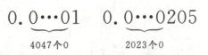 [解析:把a和b都看成整数计算,125×8=1000,因为a是2026位小数,b是2025位小数,所以它们的积是4051位小数。从1000的个位向前数4051位,4051-4=4047,所以积的小数点右边共有4047个0。计算a+b时,相同数位对齐,8和2对齐,所以结果为