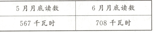 2. (2024·北京海淀区期末)新趋势 图表信息 下表是丁丁家5月底和6月底电表读数情况,电费的单价是0.57元/千瓦时,丁丁家6月份应缴电费多少元? (5分)