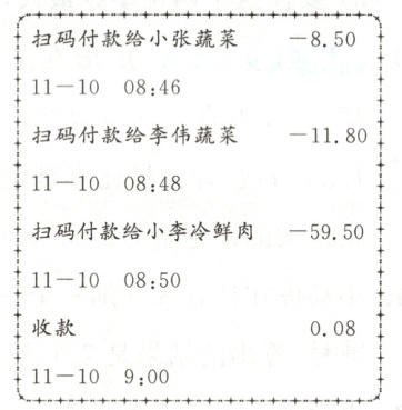 (2)妈妈买蔬菜花了多少元?如果妈妈买菜前手机钱包里有800元,那么现在还有多少元?(3分)