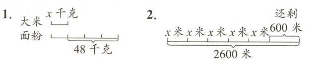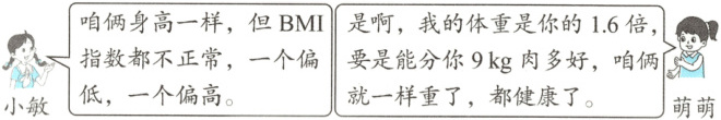 4. (2024·桂林秀峰区期末)新情境 知识科普 BMI指数是国际常用的衡量人体胖瘦程度以及是否健康的一个标准,偏低或偏高都代表着身体不太健康。如图,设小敏的体重为x kg,下面方程正确的是( )。
