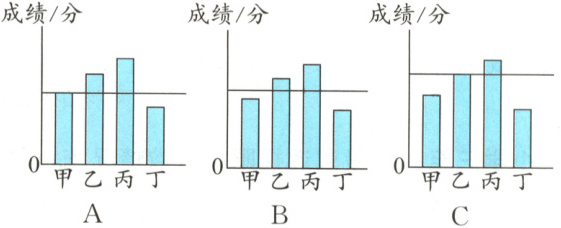 4. (2024·宁波奉化区期末)将甲、乙、丙、丁4人的数学成绩制成条形统计图。如果用一条直线表示4人的平均成绩,那么最合理的是( )。
