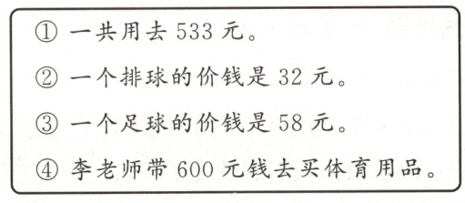(1)要解决“每个篮球多少元”这个问题,需要知道的信息是( )。(填序号)(2分)