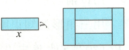 1. 亮点原创 如图,一张长方形纸条的长是$x$,宽是$y$。用这样的4张长方形纸条围成一个大长方形(无重叠部分),围成的大长方形的面积可以表示为( ),中间空白部分的面积可以表示为( )。(4分)