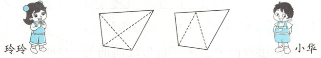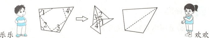 (2) 欢欢把四边形分成两个三角形,因为三角形的内角和是180°,所以四边形的内角和是180°×2=360°。(合理即可)