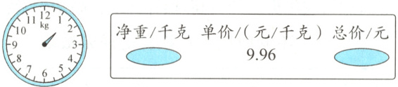 10. 11.04 [解析:由题图知哈密瓜的质量是1.5千克,由“单价×数量=总价”可得这个哈密瓜的总价是1.5×9.96=14.94(元),因为李阿姨付款时用积分抵扣了3.9元,则她实际付了14.94 - 3.9 = 11.04(元)。]