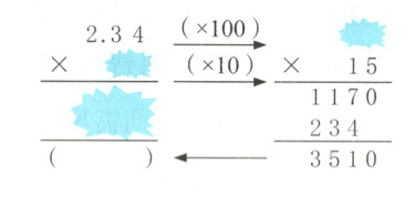 1. 新趋势 算理理解 小南在探究小数乘法时,不小心打翻了墨水瓶,观察她的探究过程,括号里应填( )。