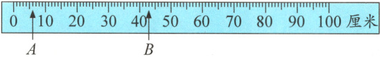 2. A用小数表示为( )米;B用小数表示为( )米;C是由7个$\frac{1}{10}$米和5个$\frac{1}{100}$米组成的,请在尺子上标出C的位置。