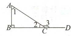 1. 如图,三角形ABC是直角三角形。已知∠1 = 58°,求∠2和∠3分别是多少度?(5分)