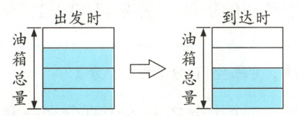 5. 淘气坐车去外地游玩,已知路程是162千米,大巴车油箱的容量为72升,汽油单价是8.9元/升,出发和到达时油箱里的油量分别如下图。请你解决下面的问题。