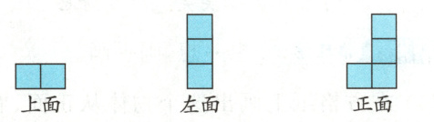 2. (1)贝贝用4个正方体搭出了一个立体图形,从上面、左面和正面看到的形状如下。