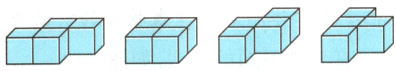 2. 如图,小明在小丽搭的立体图形的基础上又添了一个同样大的正方体,搭出了右边6种不同的立体图形。