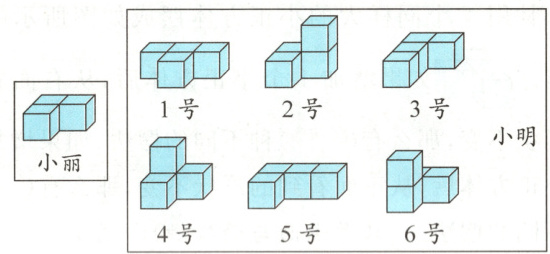 ,小明搭的立体图形中,从正面看到的形状和小丽的相同的是( )号。(3分)